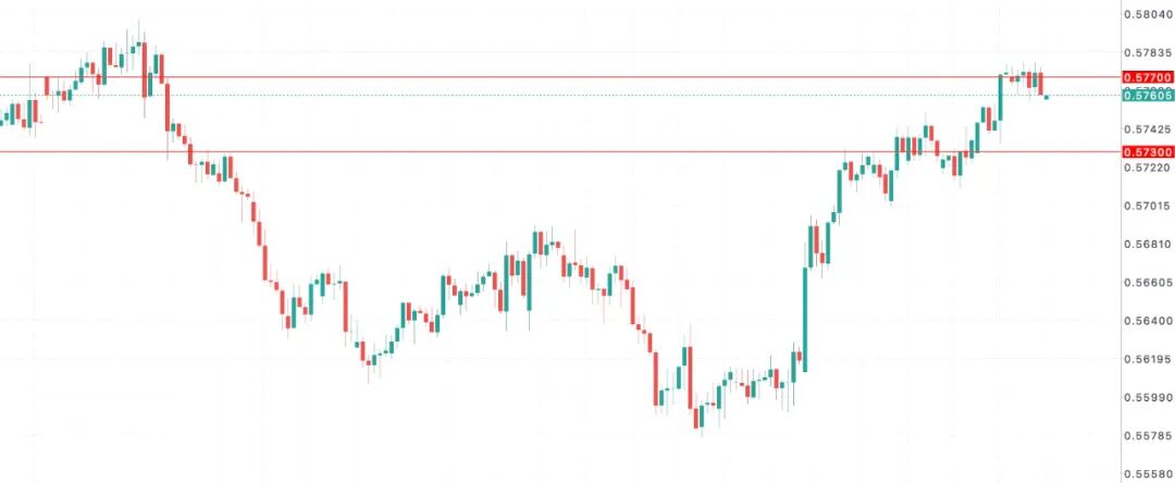 与此同时,纽币当前价格走势与顶部结构所对应的0.5770一线构成其短线阻力区,且对应RSI指数已逐步接近70超买区间,技术传导逻辑提示纽币短线在未能成功击穿0.5770区域阻力之前,买方仍需紧惕短线所存在的技术性回调压力风险。与此同时,如若多头期望提升主动优势局面,则市场买方力量当前需位于0.5770区域上方巩固底仓,并通过量能与动能二次共振,才有望凝聚多头积极看涨动力,为汇价进一步上行测试0.5800目标区域打开潜在技术空间。