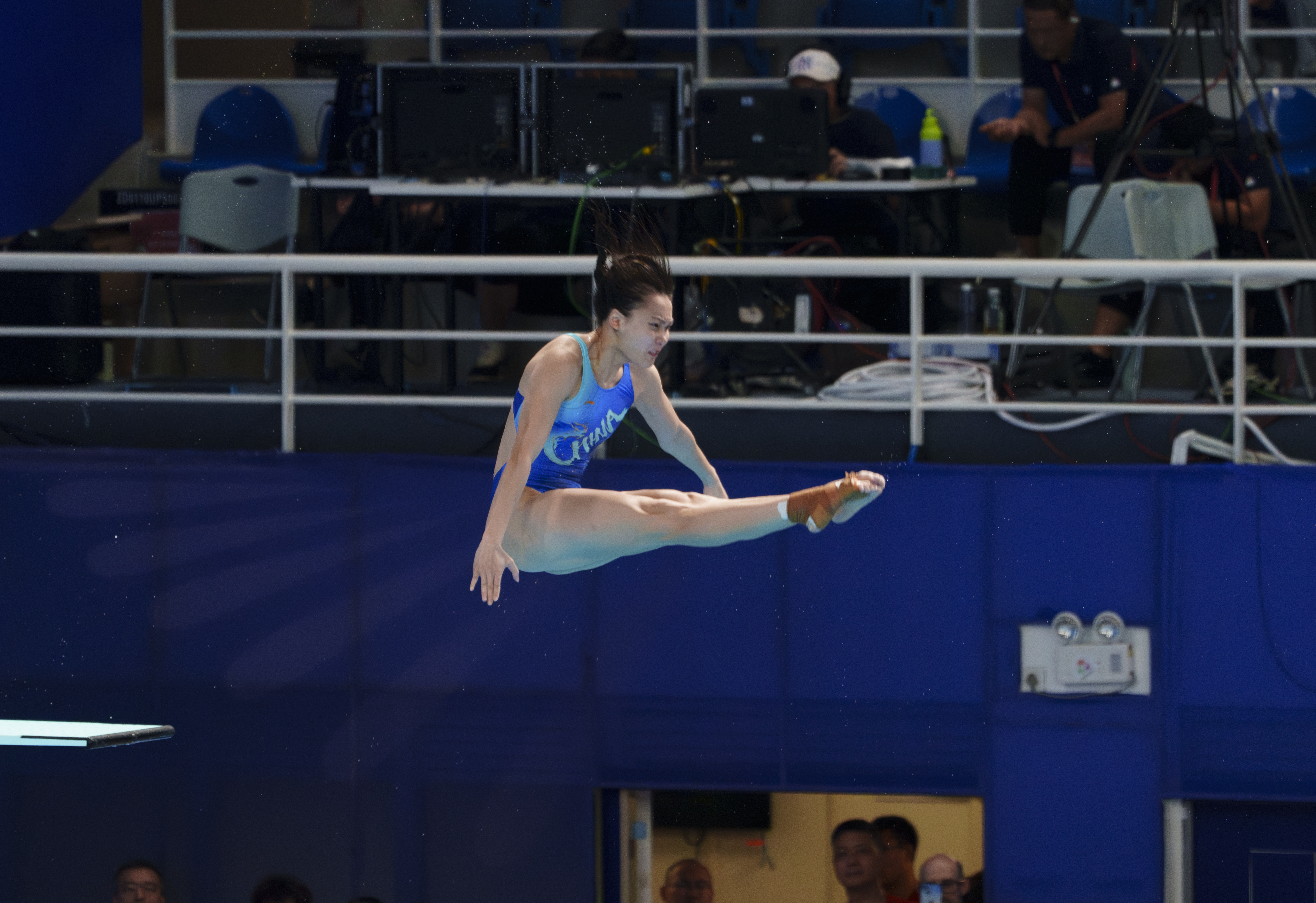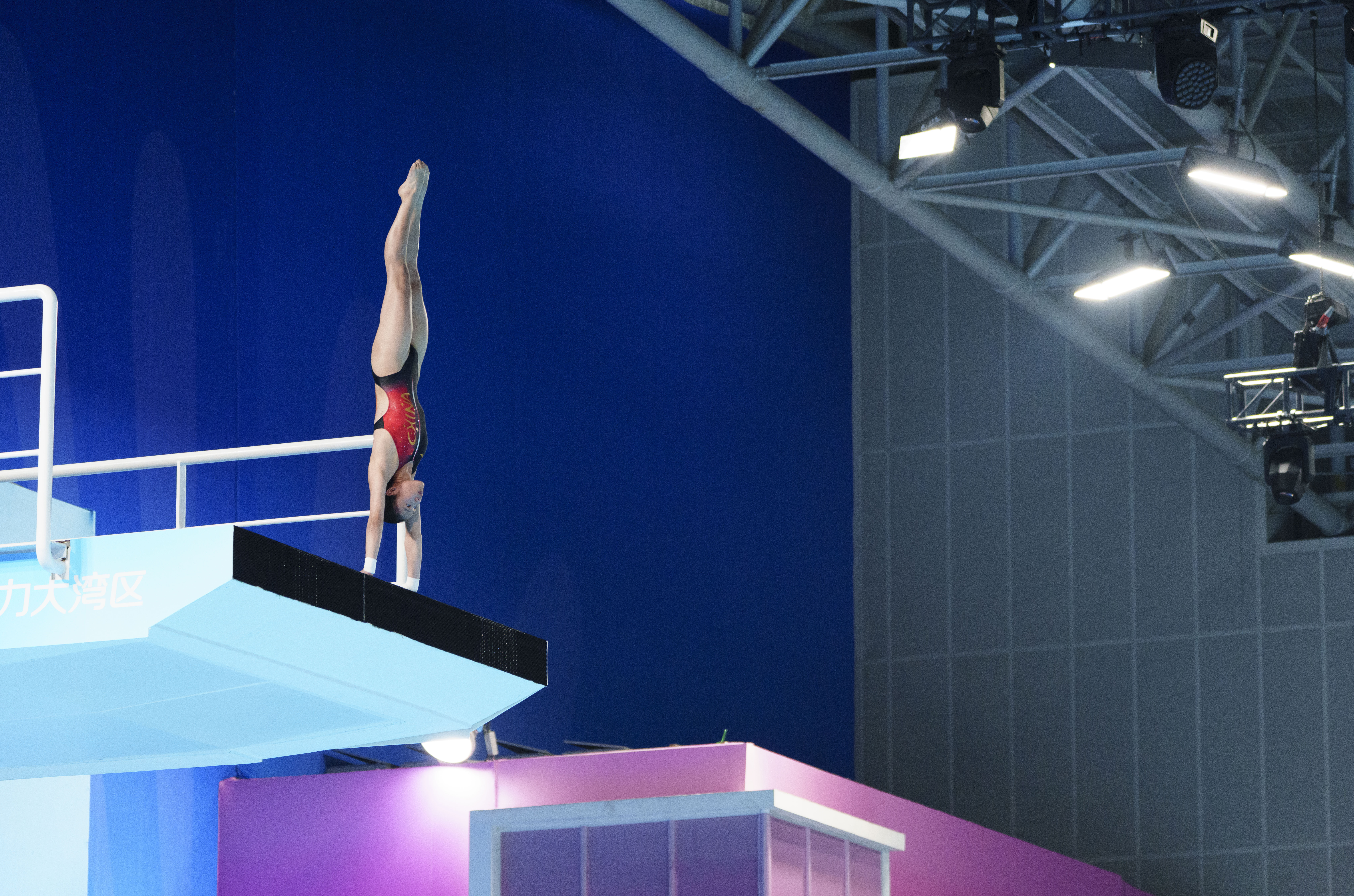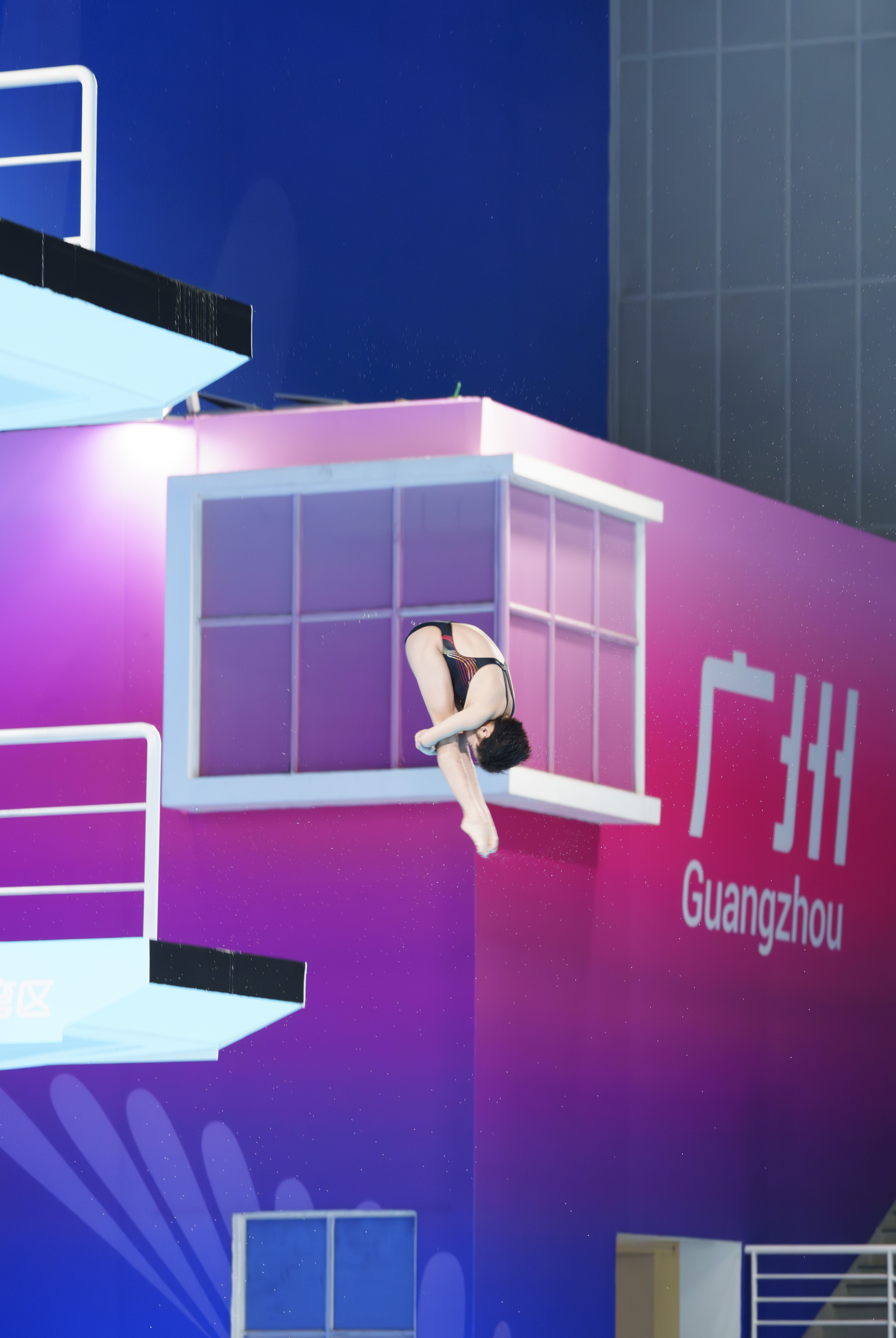 11月2日晚,唐灵/舒昕组合在双人10米跳台赛场。