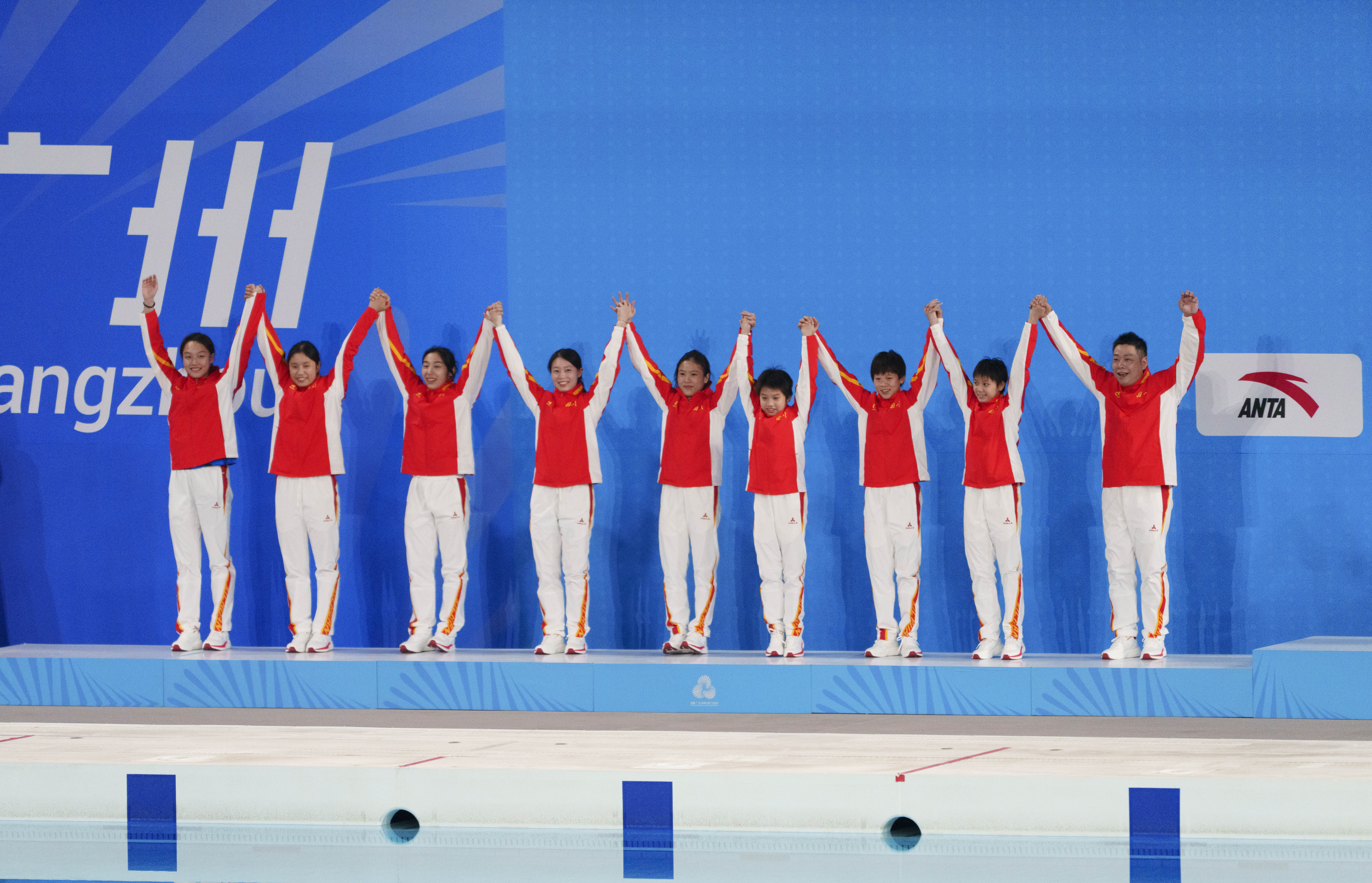 11月2日,四川队8名队员和教练登上领奖台。